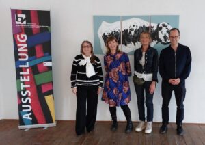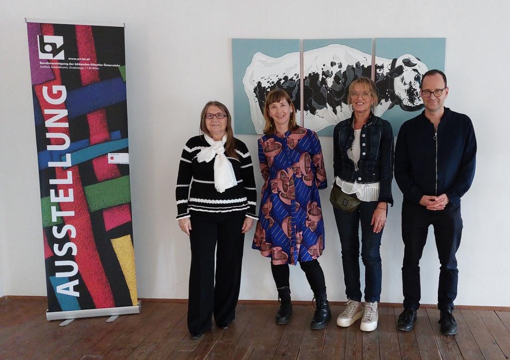Dr. Greif, Direktorin der Kunst-VHS Wien, Mag. Bockstefl, Leiter des Langenzersdorf Museums und die Künstlerinnen Angelika Hofmeister und Lucja Radwan.